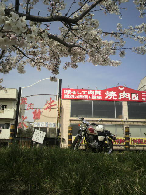 桜と単車を、と思ったら焼き肉・・・(;ω;`)ぶわっ