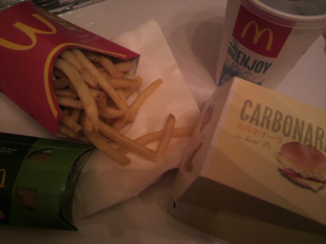 今日の自棄食いは先行販売のカルボナーラチキン(ポテトはL)セットとアップルパイ!